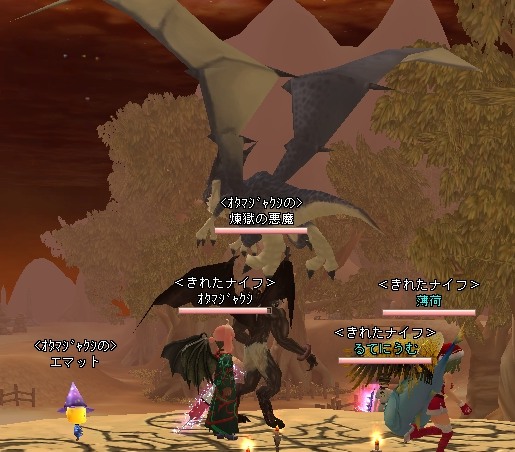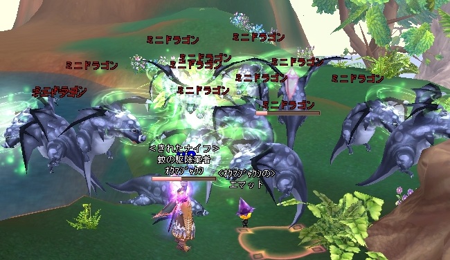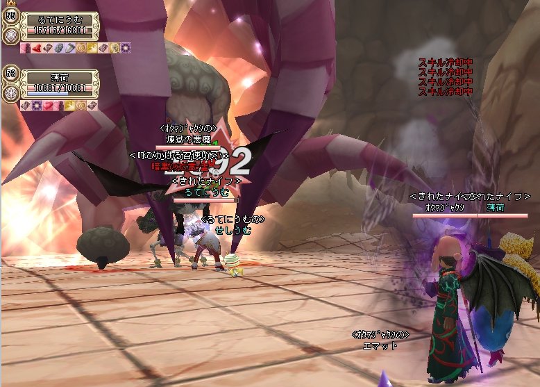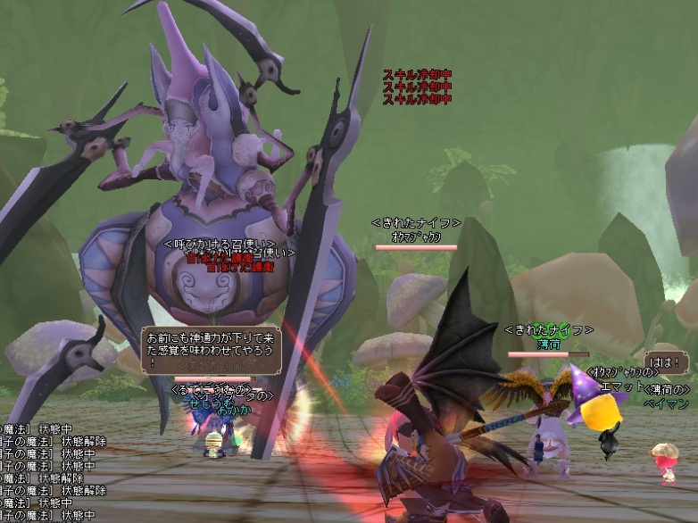 戦闘中の様子。雑魚処理とデバフ掛けを同時にやってました。超忙しかったw